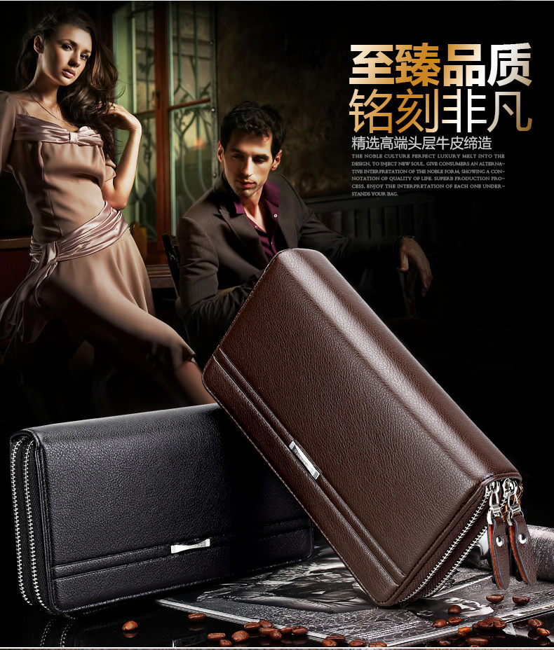 MEN'S BUSINESS DOUBLE ZIPPER LEATHER WALLET